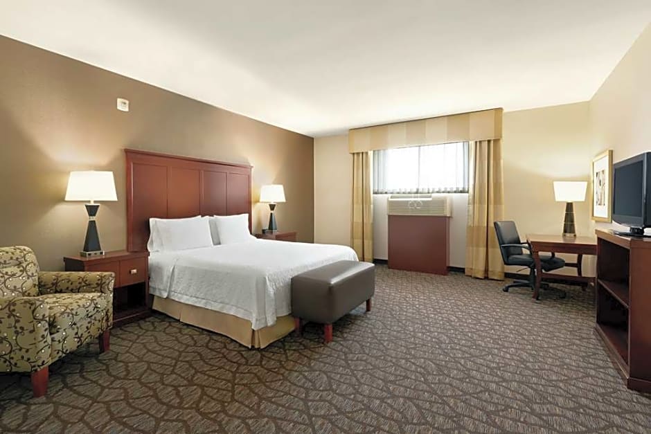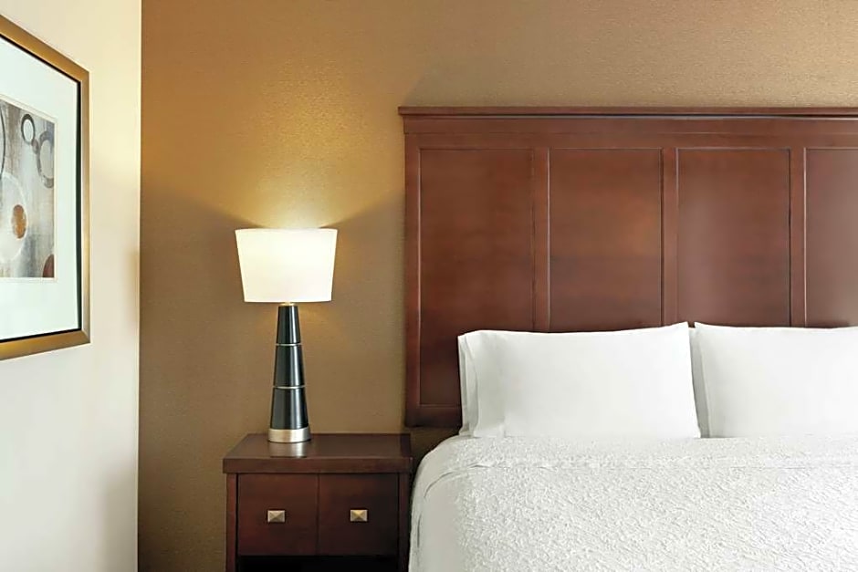 Sofa bed, 37-inch LCD HDTV, work space, coffeemaker, free WiFi access Enjoy a comfortable stay in this spacious studio suite which features a king-sized clean and fresh Hampton bed®, a work space and a cozy sofa bed to accommodate extra guests. Work in comfort at the large desk area or stay connected with free WiFi access. The bathroom offers guests soft towels, ample dressing space and a shower featuring a curved shower rod for added space and light when showering. A 37-inch LCD TV with HD channels and a coffee/tea maker are included for your convenience.